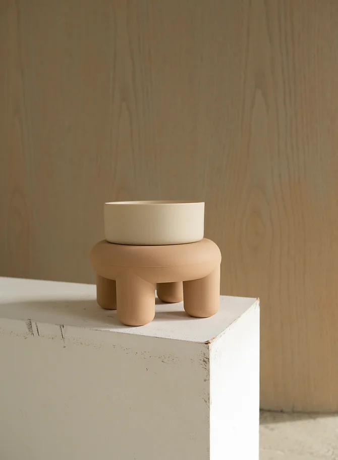 組合 - 陶瓷碗 + 沙漠橘矽膠桌