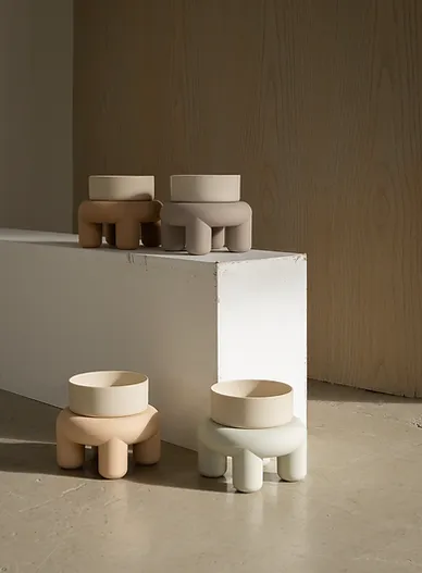 組合 - 陶瓷碗 + 鼠尾草灰矽膠桌
