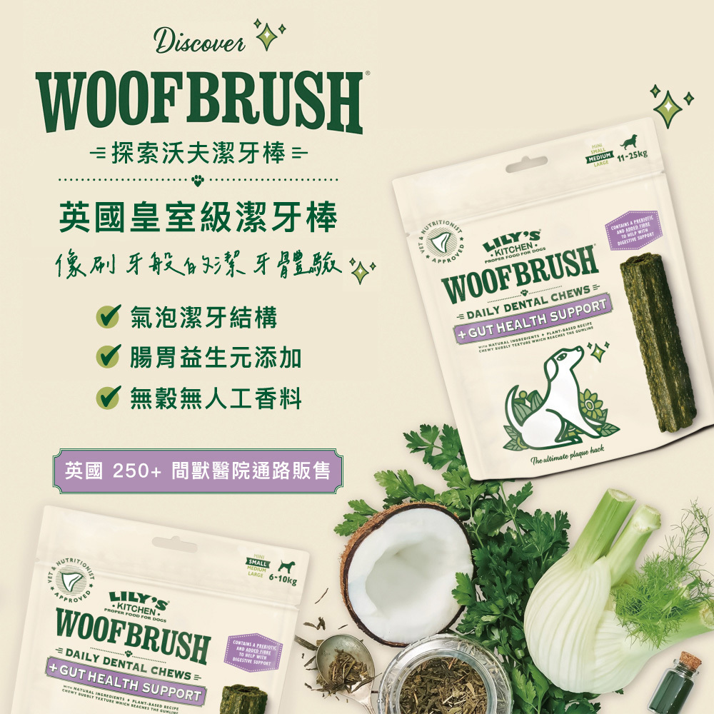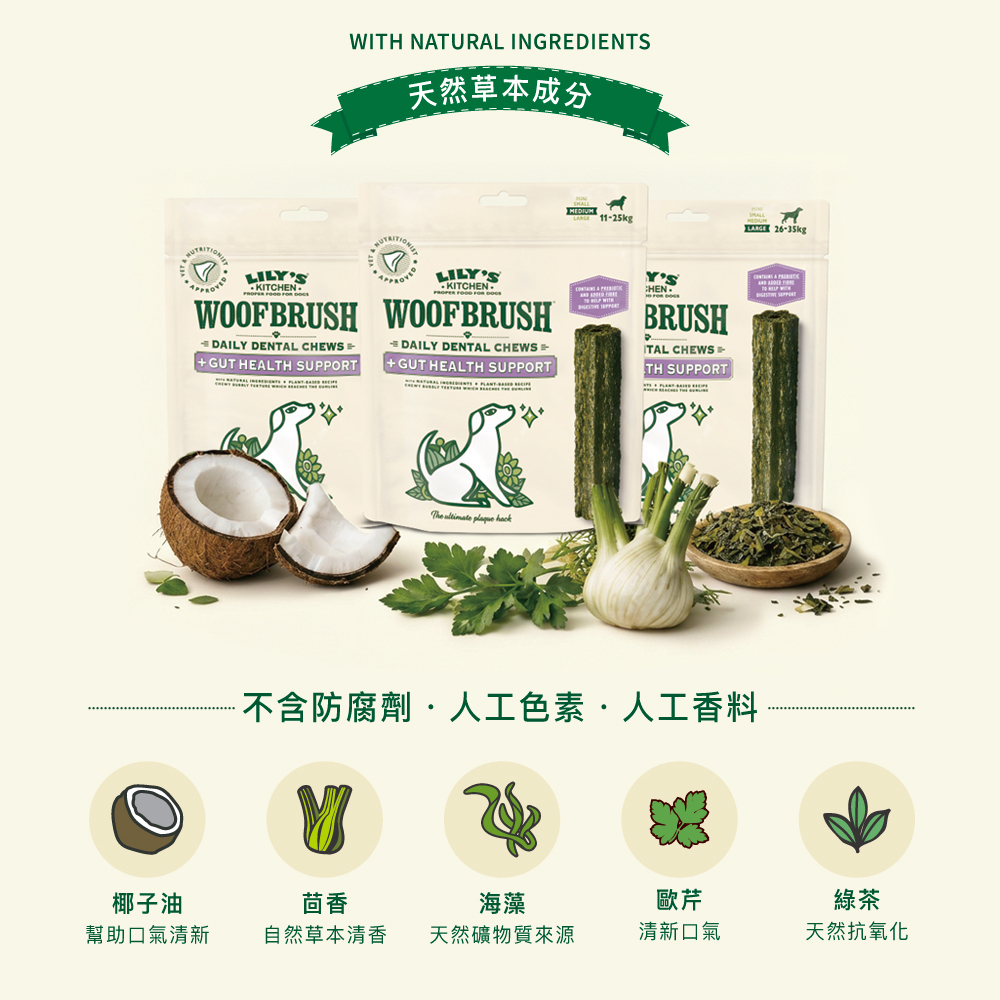 英國Lily's Kitchen|沃夫潔牙棒 腸胃益生元配方 (M) 7入