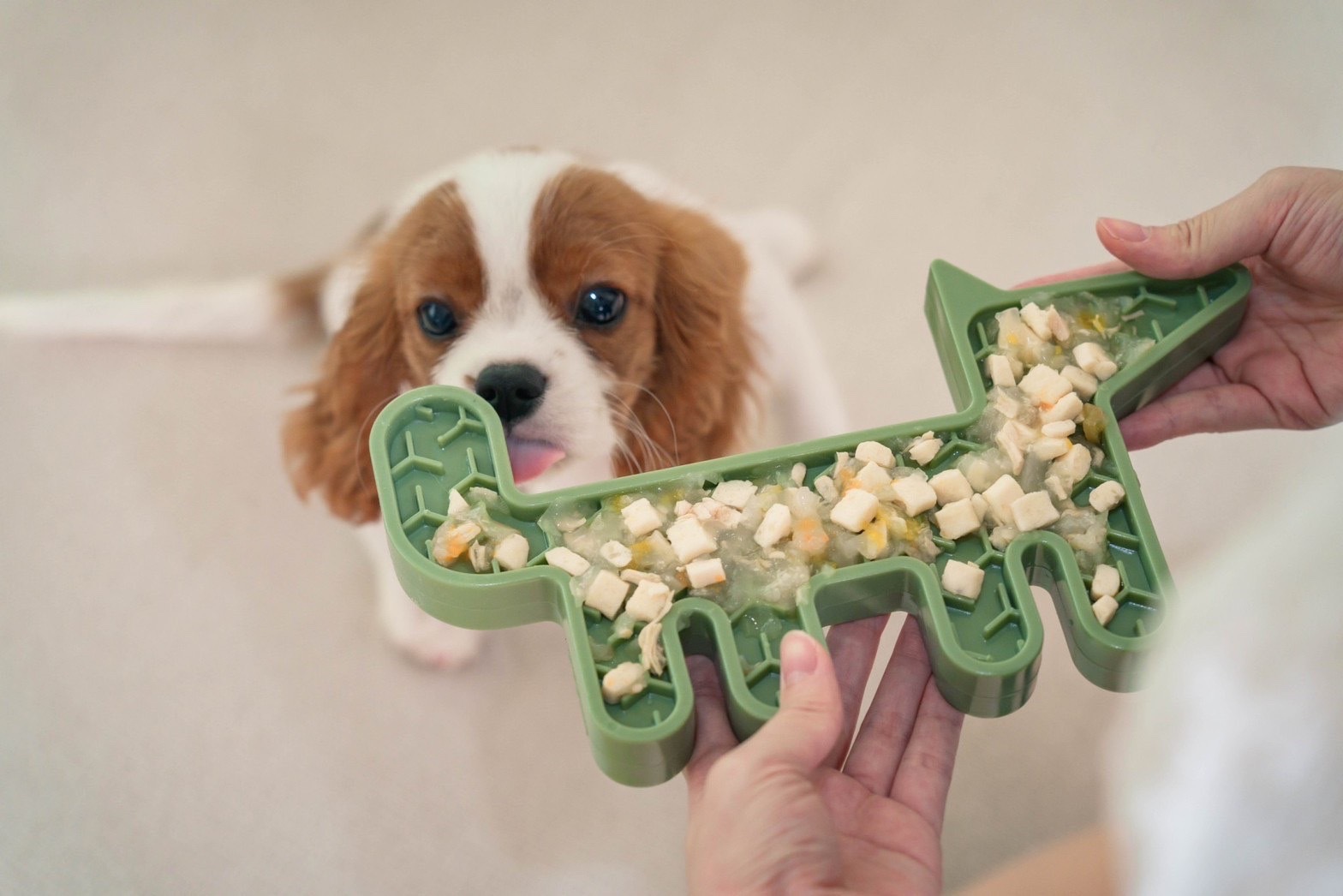 Volpe慢食碗也可以用作訓練期間獎勵毛寶貝的甜點盤。舔的動作不僅能讓狗狗注意力集中、減緩進食速度,也能舒緩壓力。