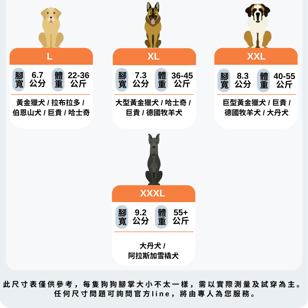 專利設計兼具俐落外型、堅固結構,更重要的是舒適度,為毛孩提供完美的腳掌防護。